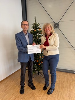 Am 16. Dezember 2025 übergab unser Schatzmeister, Oberstleutnant a.D. Ludwig Simmel, einen weiteren Scheck an die Gemeinnützigen Werkstätten und Wohnstätten GmbH (GWW) in Gärtingen.