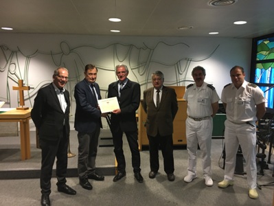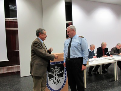 Professor Kunz bedankte sich anschließend für die langjährige gute Zusammenarbeit und tritt nunmehr ins zweite Glied zurück. Ihm folgt der Leiter des Bundeswehrkrankenhauses, Generalarzt Dr. Ralf Hoffmann, nach. Da der bisherige Geschäftsführer, Pfarrer Max Ziegler, Mitte nächsten Jahres eine neue Aufgabe übernimmt, wurde der evangelische Krankenhauspfarrer, Michael Kröner, als sein Nachfolger gewählt.