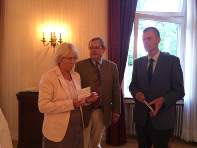 Im Rahmen der diesjährigen gemeinsamen Sitzung von Präsidium und Beirat in Köln konnte der Vorsitzende des Präsidiums der Stiftung Deutscher Offizier Bund, Oberstleutnant a.D. Nikolaus Graf Adelmann, einen Spenden-scheck in Höhe von 2000,-€ an Beate Jung überreichen. Die Schirmherrin der Aktion Sorgenkinder in Bundeswehrfamilien, die auch Mitglied des Beirates unserer Stiftung ist, bedankte sich bei allen Präsidiumsmitgliedern für die sehr großzügige Spende und versicherte den Anwesenden, dass mit diesem Geld dort geholfen wird, wo Familien allein überfordert sind; sei es der behindertengerechte Umbau von Fahrzeugen, Treppenlifter, ungedeckte Behandlungskosten, Kuren, Rollstühle, Kosten für nicht anerkannte Heilmethoden, Delfintherapien und vieles mehr. (HK)